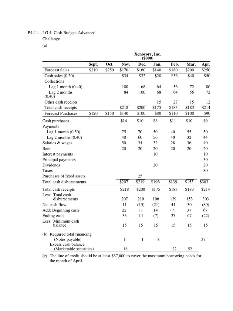 Solved Cash Budgeting Rework Problem 16 10 Using A Spreadsheet Mo Chegg Com