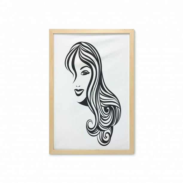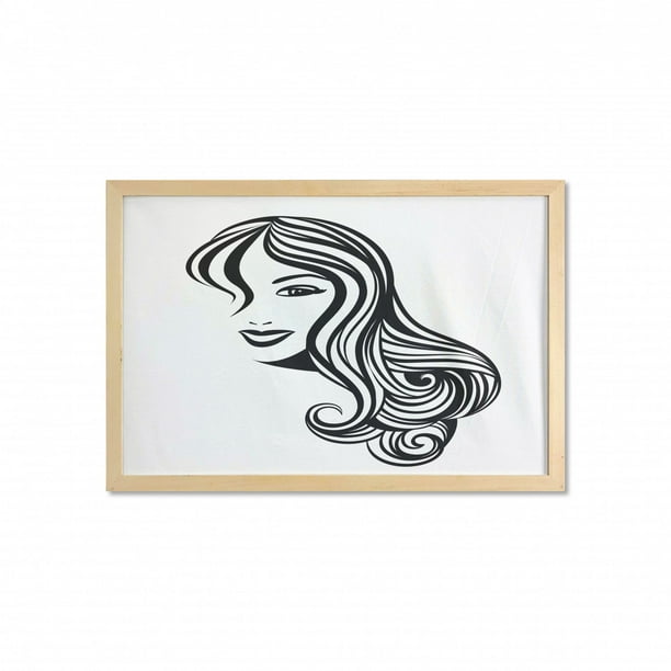 Hair Salon Wall Art With Frame Black And White Vintage Style Portrait Of A Young Lady With Indulgent Hair Printed Fabric Poster For Bathroom Living Room 23 X 35 Black And White